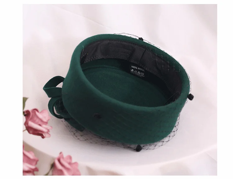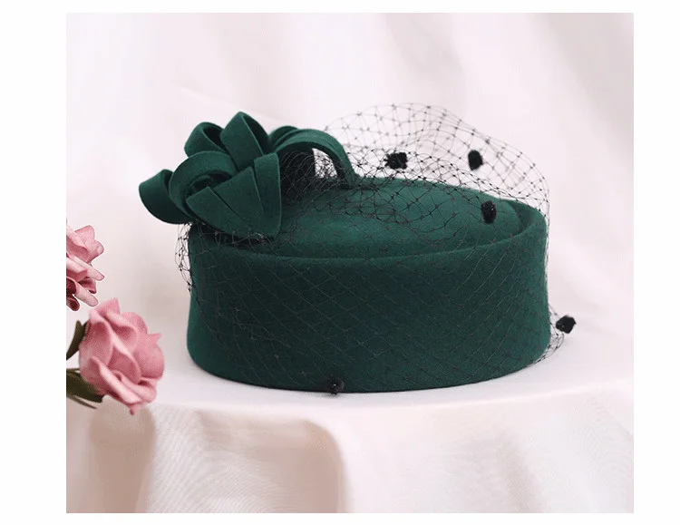 Fedoras Hat Women Fascinator Hat Teardrop Dome Top Bowknot Fancy Wool Pillbox Hat For Lady