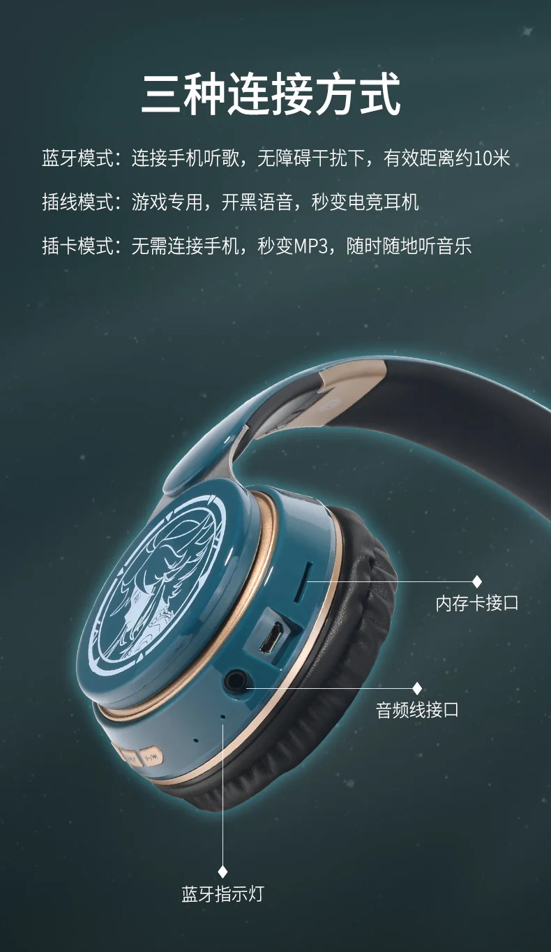 Bluetooth mode: connect the mobile phone to listen to the song, barrier-free interference, the effective distance is about 10 meters plug-in mode: game special, gang up voice, second change e-sports headset