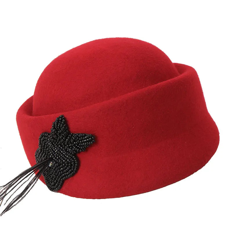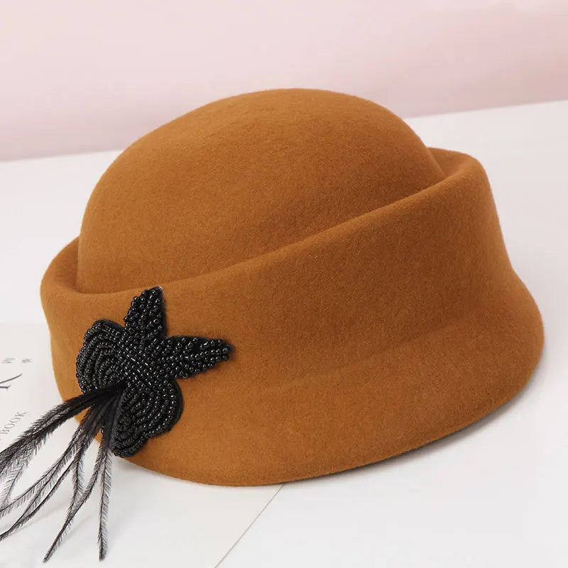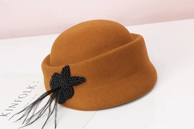 H734 Fedoras Hat Women Autumn Winter British Fashion Retro Wool Feather Cap Lady Temperament Elegant Church Banquet Warm