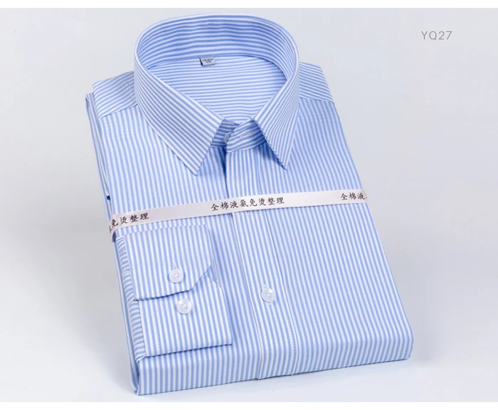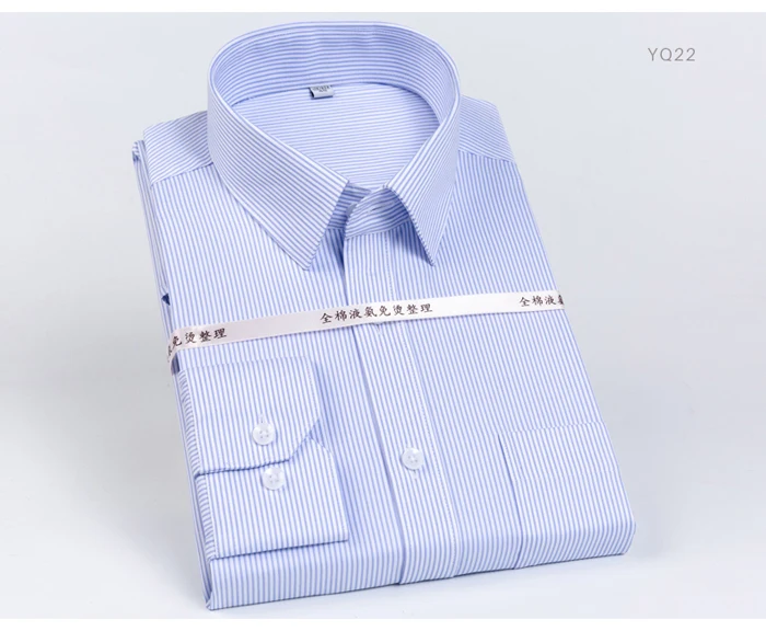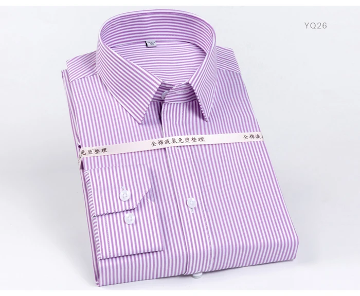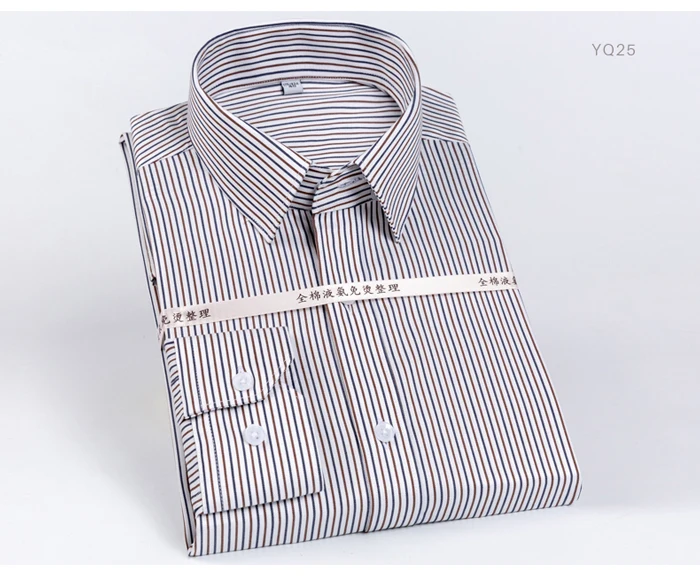 Men's Classic Striped Printed Wrinkle-Resistant Dress Shirts 100% Cotton Long-Sleeve Non-iron Shirt