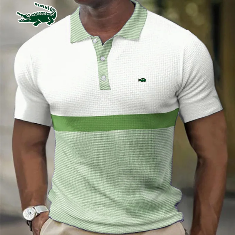 Men's Polo Shirt Fashion Stripe Stitching Casual Lapel Button Summer