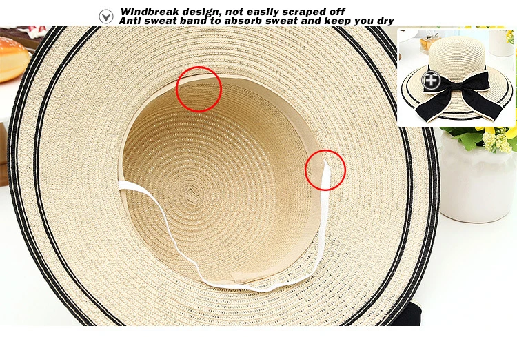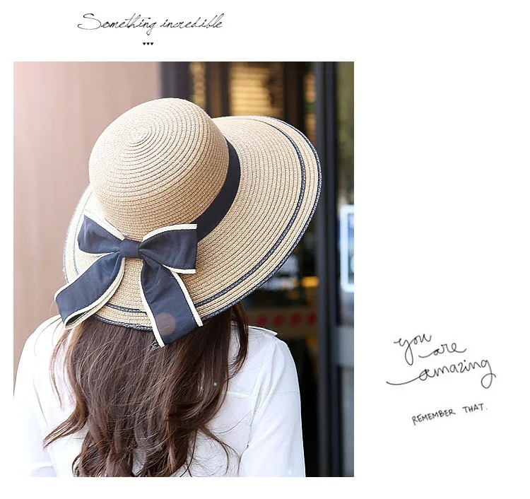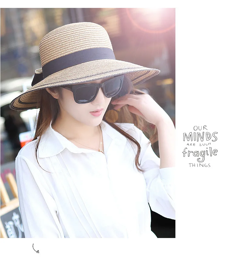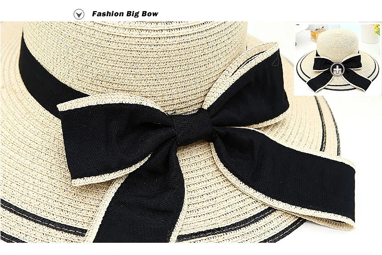 Panama Women's Beach Straw Hat With Large Brim, Sun Shading, And Fashionable Outdoor Bow Summer Cap H65