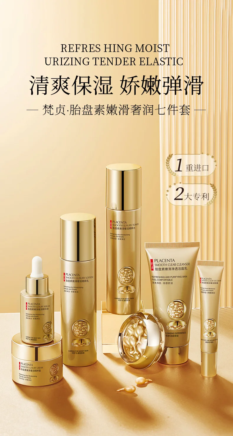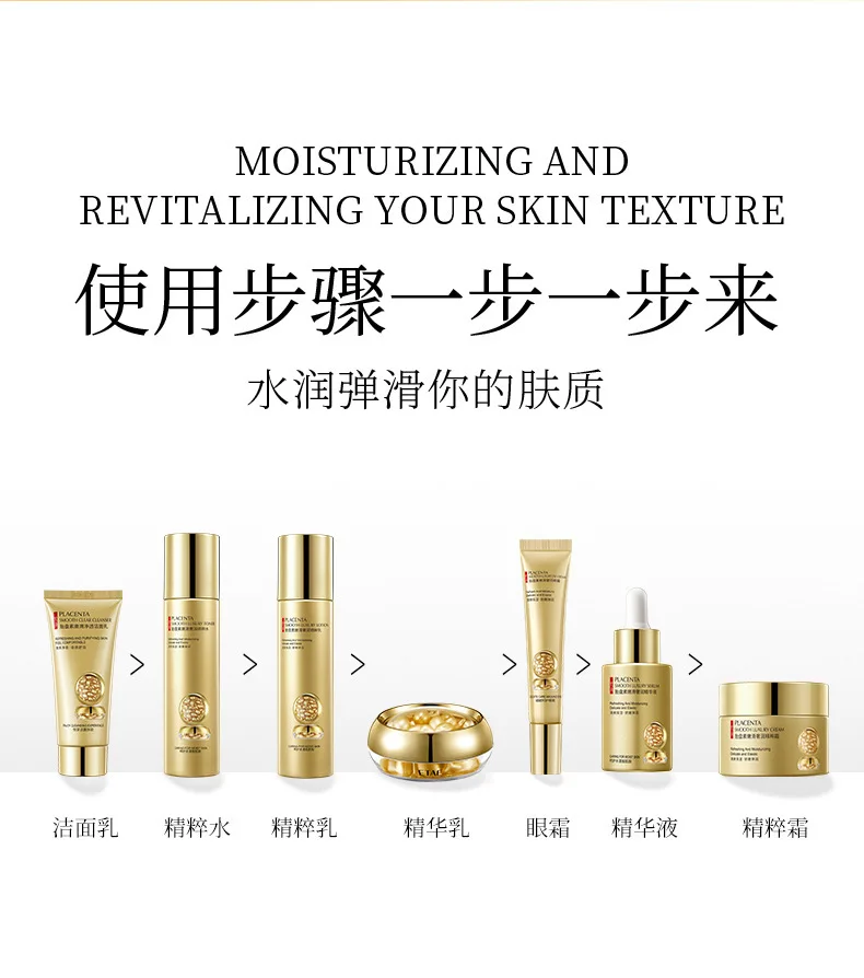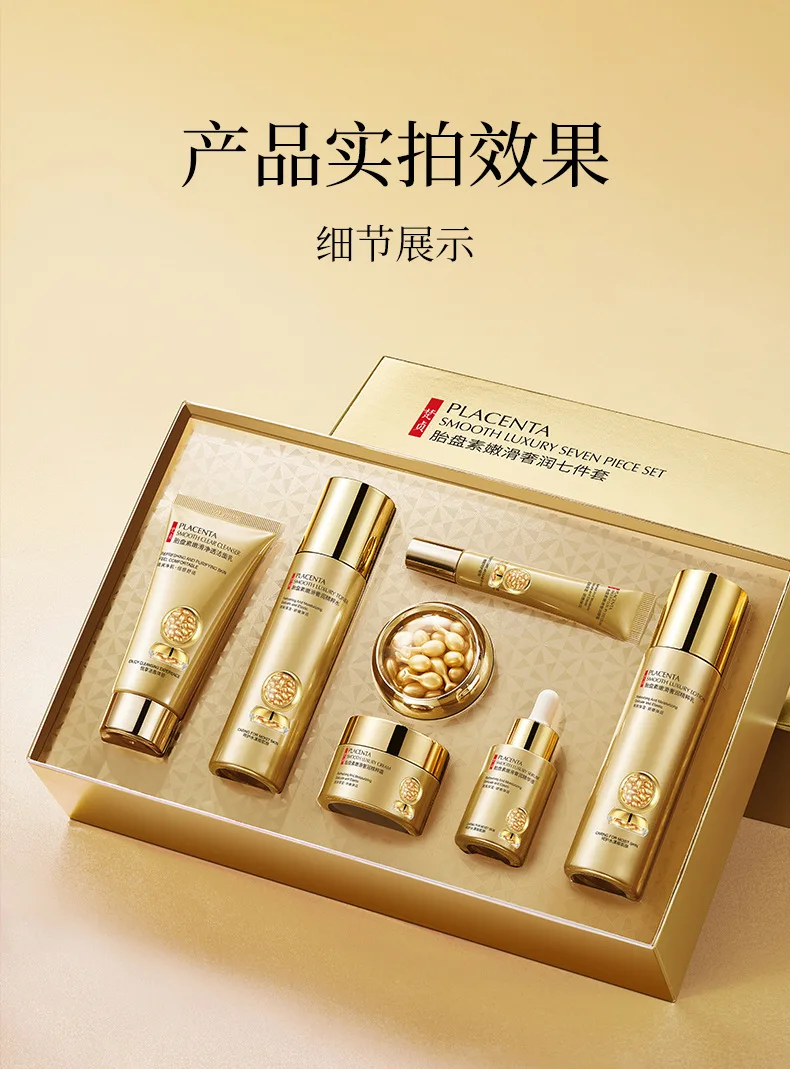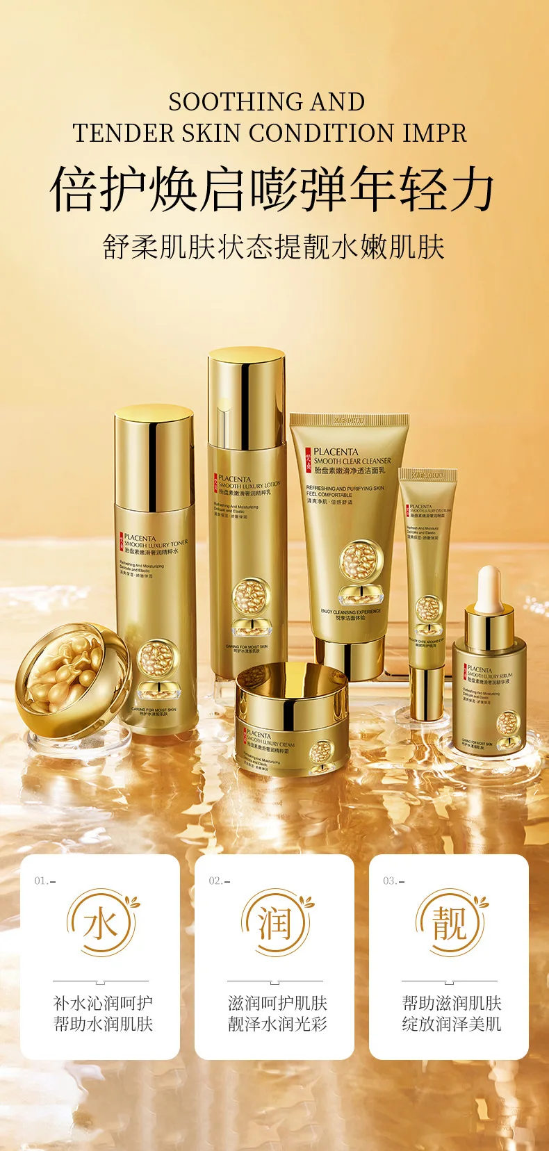 Skin Care Set Face Toner Emulsion Eye Cream Placenta Anti-Aging Serum Reduce Saging Wrinkles Facial Cleanser Kit 7Pcs/Box