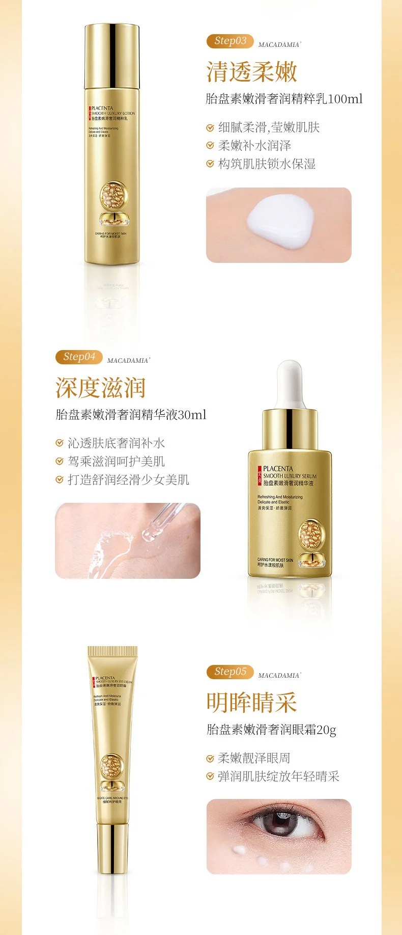 Skin Care Set Face Toner Emulsion Eye Cream Placenta Anti-Aging Serum